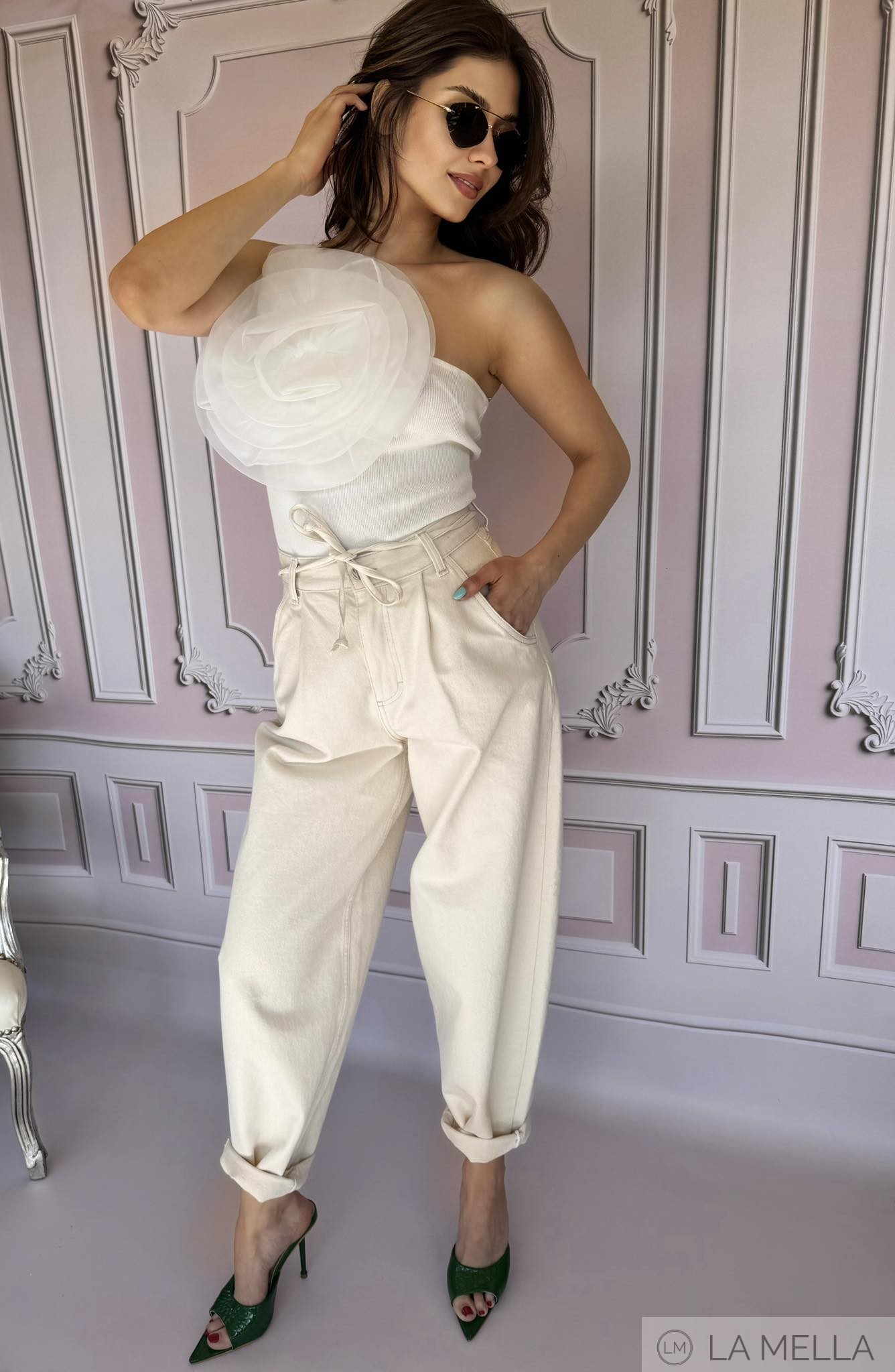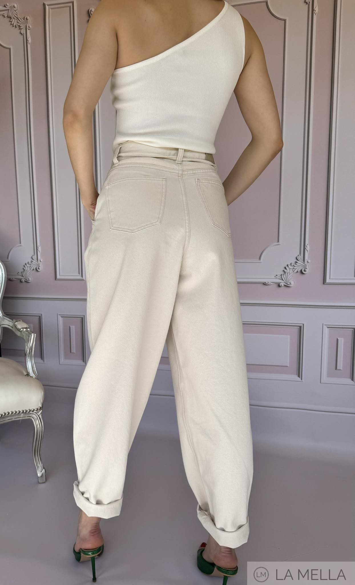 SPODNIE OVERSIZE NANCY JEANS BEŻ